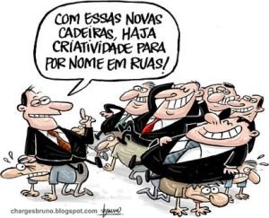 Maldade do chargista Bruno desenhar suas excelências em cima dos contribuintes. Maldade maior julgar que escolher nomes de ruas, emitir votos de louvor, dar condecorações, títulos, diplomas não seja trabalho duro, árduo. Se o Bruno fizer uma charge retratando pejorativamente a reunião de nossos nobres representantes uma ou, no máximo, duas vezes por semana, durante duas horas cada sessão, com direito a dois meses de férias anuais, juro que boicoto artista tão arcaico e infenso à modernidade das relações de trabalho.