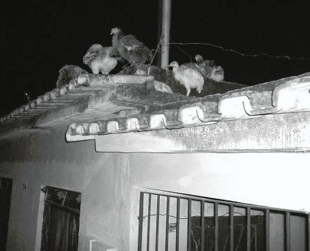 Uma cena curiosa pode ser vista todo dia, à tardinha, na rua Padre Armando Geerts, em São José do Calçado/ES. É quando as galinhas da dona Jandira se recolhem para dormir…, em cima da laje! A casa não tem quintal, mas isso não abalou a dedicação de dona Jandira para com as penosas. Ela diz que vende os cobiçados ovos caipiras (R$ 3 a dúzia) para reforçar a renda familiar. “Elas já estão acostumadas. Ficam aí na laje, se protegem do sol na sombra da parede vizinha (casa mais alta), e quando chove vão para o galinheiro. Mas elas gostam de dormir é aí mesmo”, disse a criadora, uma brasileira que, como tal, sabe dar o seu jeitinho.